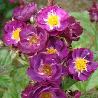 Кустовая роза "Вайолет Худ" с уникальным темно-лавандово-фиолетовым окрасом представляет собой сорт гибрида мускуса, выведенный в Бельгии Луи Ленсом (1924-2001) в 1973 году.
