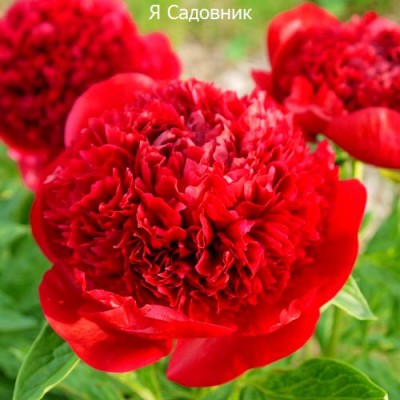 Цветки этого сорта пиона — махровые, имеют форму полусферы и окрашены в насыщенный рубиновый цвет. Они делают растение поистине уникальным.